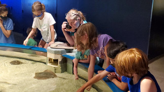 The next day we woke up with intent. The previous day felt almost wasted; even though it wasn’t, it had been a slower, more resting kind of day. Tropical Storm Elsa was cleared out, the wind was substantially less, and the sun was back out in full force. We had a quick breakfast, restocked ice (we went through a lot of ice), and headed north. The main 2 goals of the day were getting Junior Ranger books stamped at the Cape Hatteras Lighthouse, and going to the aquarium. The Junior Ranger program is a neat way to get children to engage in learning about National Park places (there’s a unique one for every Park, Monument, Memorial, and Seashore). They go through an activity booklet and complete activities appropriate to their age, and get sworn in as Junior Rangers and get a badge that is unique to the location. Best of all… it’s free! All three enjoyed doing their booklets, and Lily is still wearing her badge a week later. We headed up to the North Carolina Aquarium in Manteo. It’s an awesome aquarium with very reasonable admission, and if you live in North Carolina you can get a year pass that conveys to other NC aquariums (there are 3 in total) and the North Carolina zoo in Asheboro, NC (the world’s largest natural habitat zoo). An annual pass to the zoo conveys to the NC aquariums, and offers free or discounted admission to a huge list of zoos around North America. The aquarium has it all, they have a sea turtle rehab facility you can walk through the corner of, they have a touch tank where you can pet stingrays, they have sharks, alligators, North Carolina native fish, jellyfish, and much more. You will need at least two hours to take it in, but with the indoor aquariums and the pier that overlooks the Croatan Sound and many more activities we haven’t had a chance to experience ourselves, you could easily spend the whole day there. They close at five, we were there for almost four hours, and it wasn’t nearly enough.